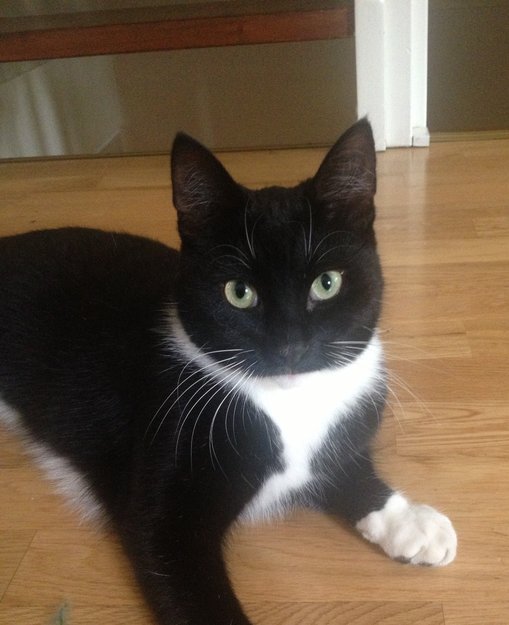 Liten katt (halvannet år), med svart rygg og hvitt bryst og hvite poter. Verdens snilleste pus, elsker å leke, nysgjerrig og lyder navnet sitt godt (Tarzan). Elsker mennesker generelt. Store øyne og ører, men veldig liten i vekst. Ikke noe problem å løfte han opp heller. Han er bare veldig, veldig snill og grei :)