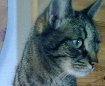 Liten og slank, tigerstripet, veldig pratsom men litt sky ovenfor fremmede. Mira er 5 år gammel, chippet og sterilisert. Går vanligvis ikke langt hjemmefra.