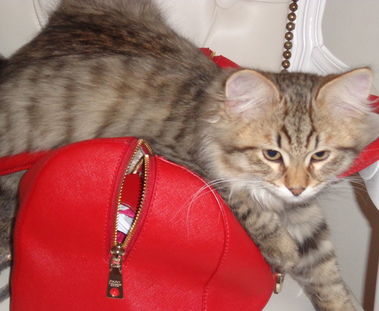 Åååå LYKKE!! Freddie kom plutselig hoppende inn katteluken, litt pusjkete med masse rart i pelsen og uten halsbånd - etter snart tre døgn ute styrtet han til tissekassen(!), spiste med stor iver mens han malte og koste heftig. Det var hans første tur utenfor terassen og han hadde en lang tur for å utforske verden utenfor huset etter å ha vært innekatt de første 9.månedene av sitt liv. Nå ligger han fornøyd og malende på plassen sin ved siden av Mac´en og passer regningene.