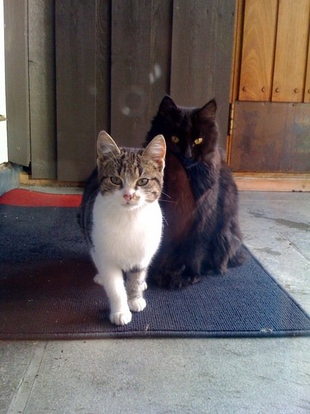 Dukket opp fredag 25.sept. Meget sky kattefrøken. Har fått seg kompis i den andre som dukket opp her. Følger ham i ett og alt.