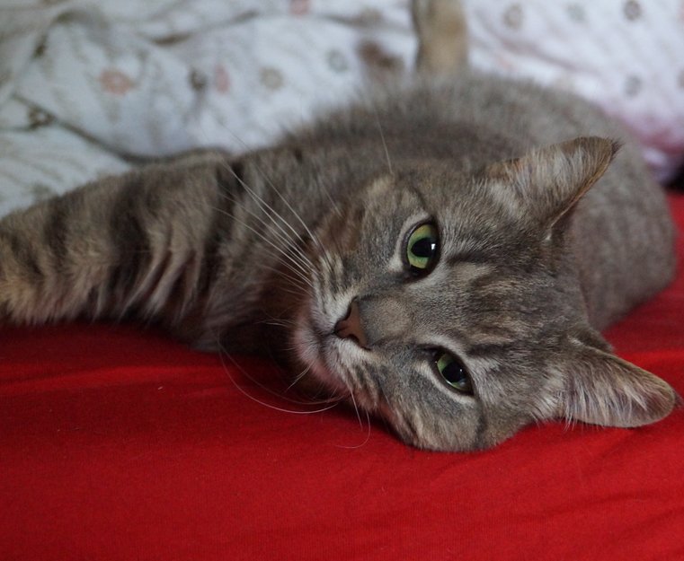 Ho er no komt heim, har funne både matskålen, plassen i fanget for kos, og no sist: sengen vår som ho no ligg og søv i. Ho blir vel liggande der ei stund, kjenner eg ho rett.
