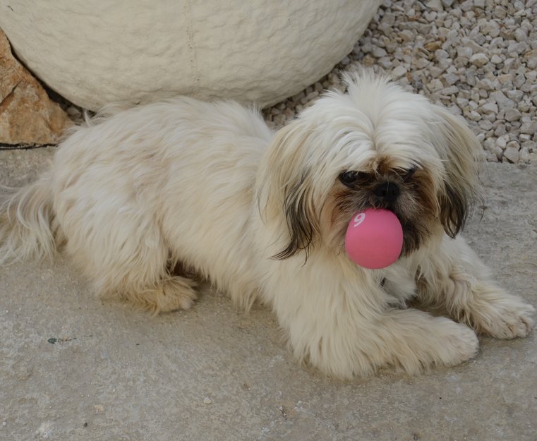 Blind på det ene øyet, har på seg sele, har utenlands chip (kroatisk)
