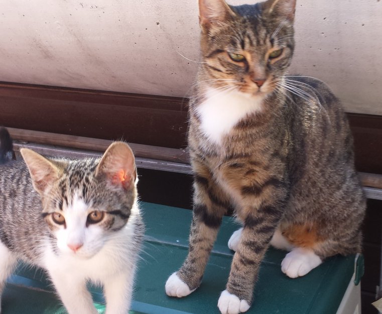 Kattemor har kommet på besøk til oss fra tid til annen siste året, ungkatt. For et par uker siden hadde hun med seg en kattunge, de holder til i området her. Ungen dier fortsatt.