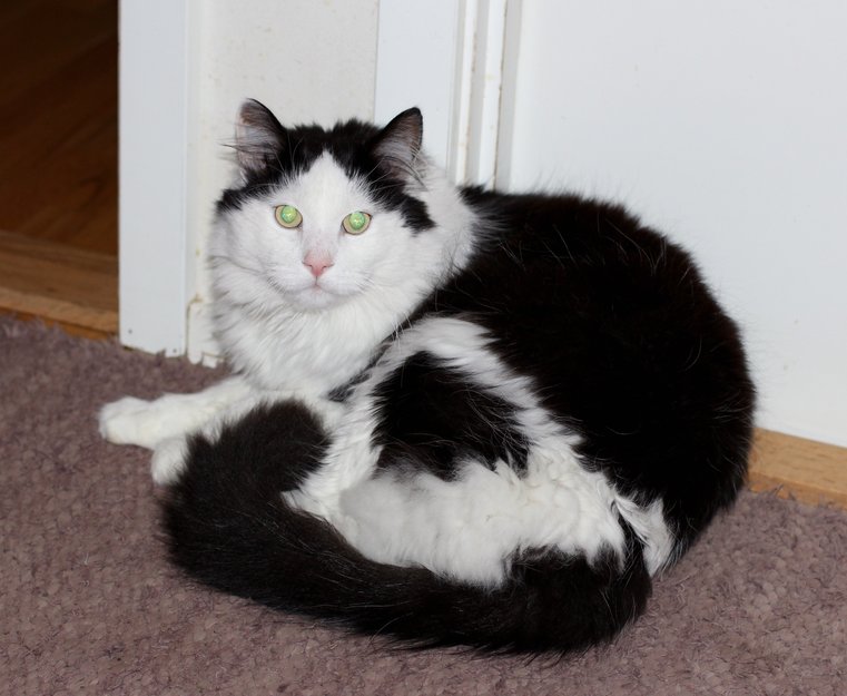 Han er ganske stor (har vært nesten åtte kilo..) Lodden.