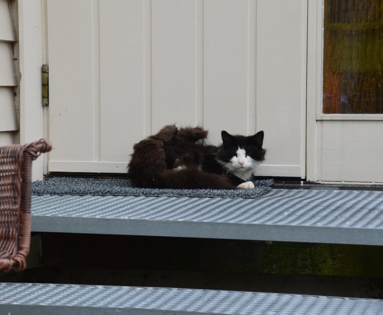 Svart og Hvit katt , hvit maske i ansiktet , hvite sokker.