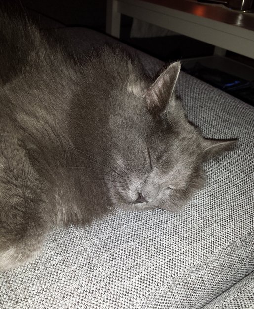Pelsen har litt lengde og er grå. Hun har en hvit bjelle festet i sitt sorte halsband( halsbandet er av typen som åpner seg hvis det hekter seg fast i noe). Hun er veldig tillitsfull og kosen. Hun har tatovert idnr i øret tillegg er hun chippet og stetilisert. Hun blir 2 år i juli.