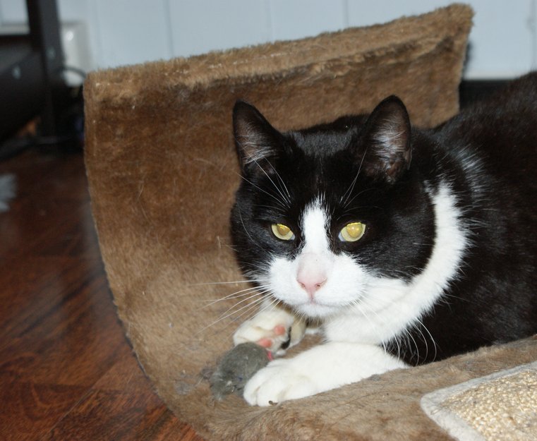 Han er en stor sort og hvit herremann på 6 år, Sort på rygg og siden, hvit under og hals og snuteparti. Han kan være litt sky og skvetten, en litt redd pus, tross størrelsen. Han er også veldig kosete, men samtidlig litt skeptisk til fremmede. Han er chipet og sterelisert.