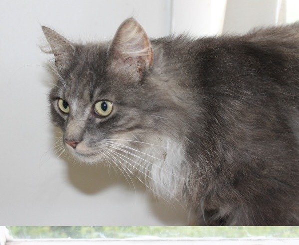 Denne katten kom plutselig inn her og forsynte seg av kattematen. Den er tynn og veldig sulten. Har gått her 1-2 uker.