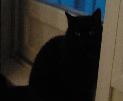 Svært med hvit flekk under haken. I underkant av fem kilo. Korthåret med tjukk pels.