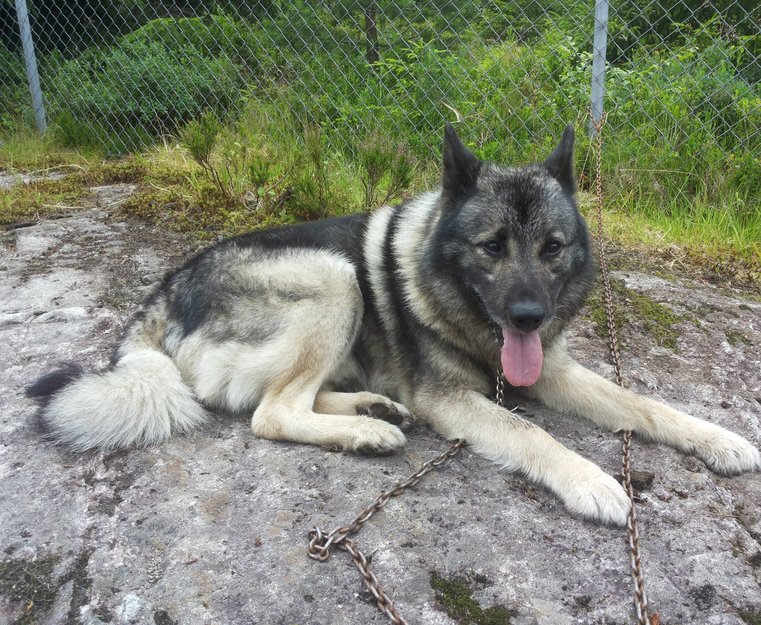Han sto plutselig utenfor løpegården vår. Han var ganske sliten, det kan hende han har løpt ganske langt.