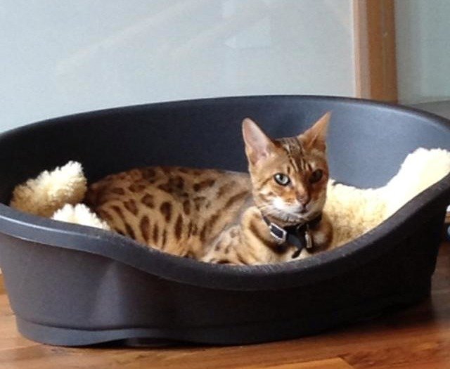 Leopardmønstret brun bengalkatt, hunnkatt, sterilisert. Hun er ganske sky for fremmede. Tatovert øre med bokstavene "JD". Chippet! Ikke halsbånd, det ble mistet rett før hun forsvant.