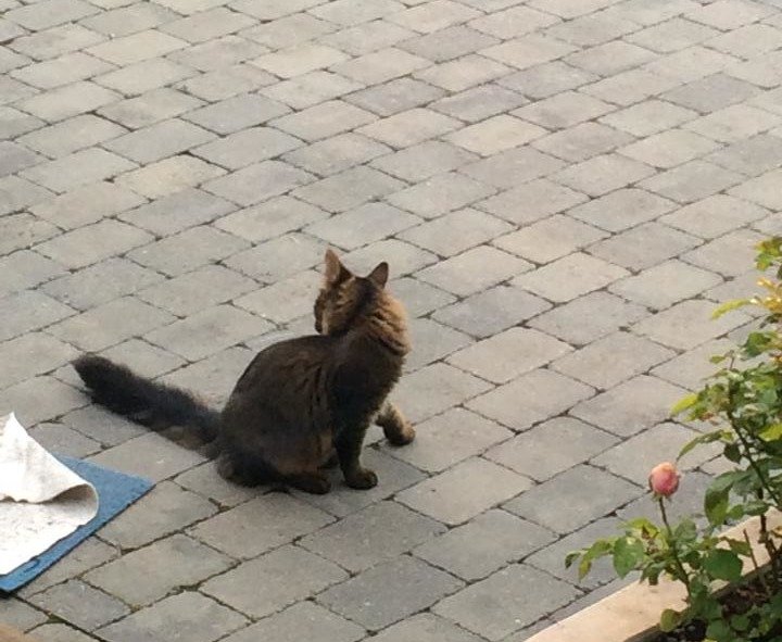 Det er en katt som er blitt observert "gråtende" i Parkveien på LANGHUS. Den 13 juli la den seg på dørmatta til et hus i gata, og prøver å gå inn hver gang døren åpnes. Det virker som den er forvirret om hvor den bor. Virker ikke så altfor stor. Langhåret og brun/svart katt med store runde øyne. Den mjauer veldig mye. Den er kontaktsøkende.