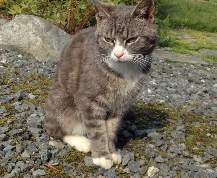 Kvit og gråspraglete hannkatt ble funnet i Sveio