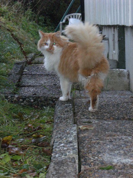 Katten har bare 3 bein. Det ene bakbeinet er allså borte.