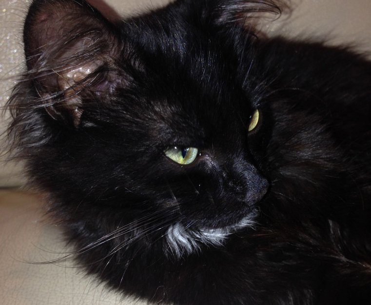 Tynn svart m / hvit under haken, kattunge streifet rundt barnehage hele dagen.
