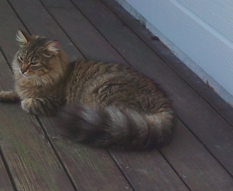 Mange av våre facebookvenner har delt vår etterlysning fra dyrebar.no , og vi har hengt opp lapper i nabolaget. Til slutt var det ei dame i nærbutikken vår, som hadde registrert en ny katt i gata, som kunne passe til beskrivelsen av vår pus. Da katten dukket opp på nytt, stengte hun den inn i bilen sin, og kontaktet oss. Vi kastet oss i bilen, og på lang avstand kunne vi gjenkjenne den bustete halen til Tøffen. Tøffen er tydelig glad for å være hjemme, og har ikke forlatt min side siden han kom hjem.