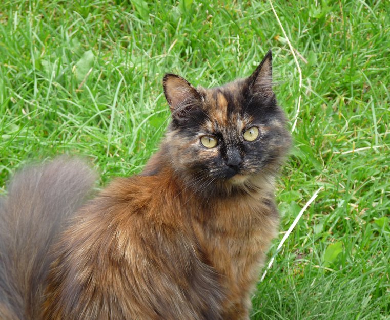 Lisa er tillitsfull og kosete og er sjeldent lenge hjemmefra. Hun har halvlang pels, buskete hale og fargene er brun, sort og oransje.