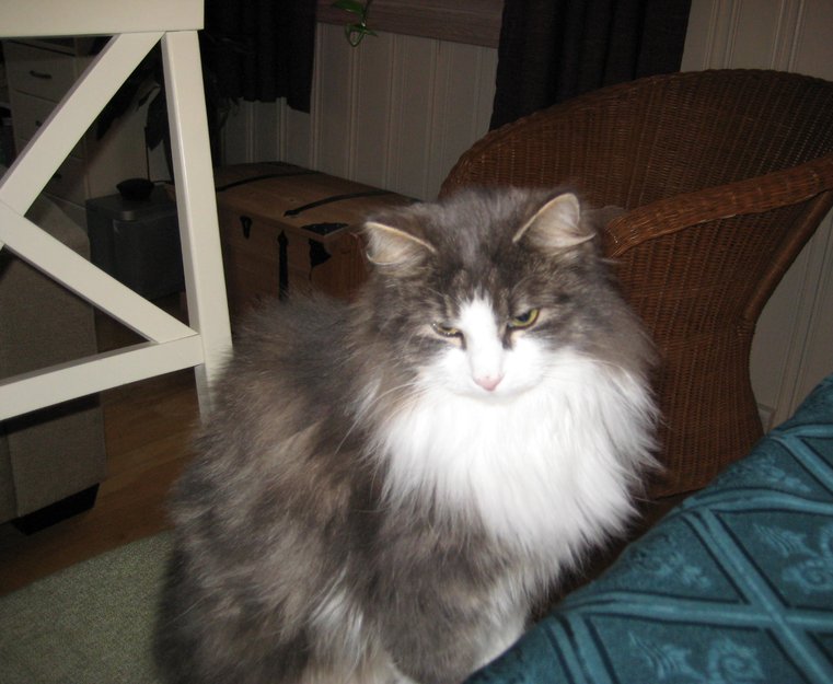 Tinka kom plutselig hjem igjen i natt, etter å ha vært borte i 7 uker. Har tydeligvis oppholdt seg i skogen. Har gått ned halvparten av vekta og veide kun 2 kg da hun kom hjem. Bortsett fra å være tynn, sulten og dehydrert er hun i fin form, ellers ingen skader. Har sjekket henne hos veterinær og har fått ormkur og vaksine. Vi er veldig glad for å ha fått henne tilbake :-)