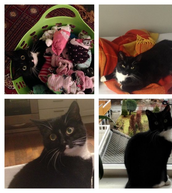 Vi har funnet Eline! Etter 6 uker på rømmet dukket hun opp på stedet hun rømte fra,og er nå hjemme hos oss igjen. Hun er tynn etter lang tid utendørs, men virker ellers i fin form. Hun går rundt i huset etter oss og vil kose og spise hele tiden.