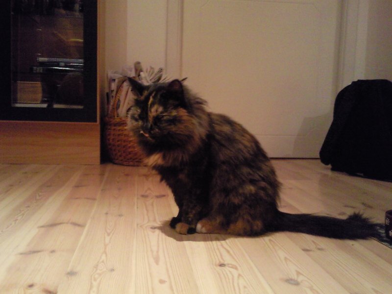 Vi fant en mjauende og sulten jentepus på Tanum 5. november. Hun var veldig tynn og hadde en del floker i pelsen. Vi tok henne inn og ga henne kattemat, vann og tak over hodet, og det var en tydelig sliten pus som sovnet på gulvet etter et godt måltid. Hun er utrolig kosete og kontaktsøkende, godt vant med mennesker, så noen må da savne denne pusen? Vi tar oss av henne inntil videre og håper at eieren gir lyd fra seg, da vi ikke kan beholde henne grunnet en sjalu og bortskjemt hannkatt. Pusen er semilanghåret, 3-farget (svart, brun og hvit). Veldig mye sort, litt brunspottet over hele kroppen samt hodet. Hun har lysebrune bakben og en liten hvit tupp på haletippen, svarte tuster ut av begge ørene, en svart og en brun pote på forbena. Håper noen savner dette sjarmtrollet og tar kontakt.
