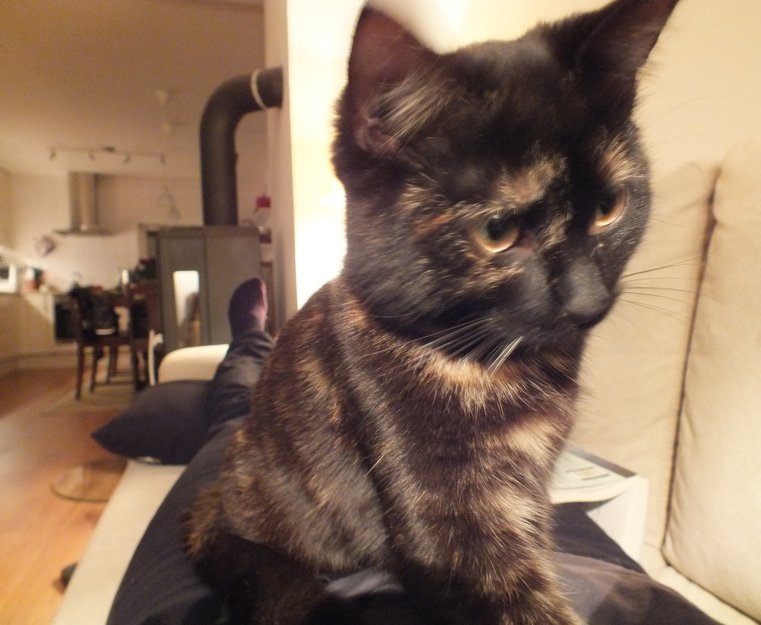 Vicky kom til rette etter å ha vært borte i 8 døgn. Vi kom på sporet av henne etter at vi oppdaget, desverre 2 dager for sent men dog, en "katt funnet"-annonse på dyrebar.no. Det var veldig snilt av Linda å legge den ut, ellers hadde vi kanskje ikke kommet på at vi kunne legge ut en etterlysning her! Vi lagde plakater av annonsen og hengte opp i hele nabolaget. Etter 1 døgn fikk vi et tips til om at hun var blitt observert i Tveita-området for noen dager siden. Etter å ha lett der i dag fant vi henne til slutt. En dame hadde tatt vare på pusen i leiligheten sin.