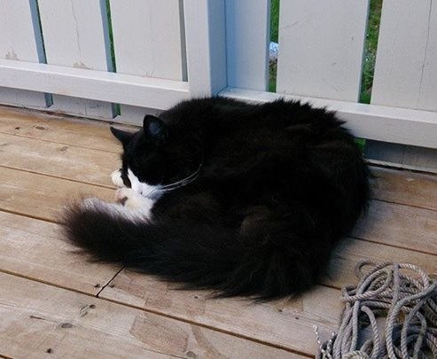 Gutten vår Sofi er hav rase katt. Halvt main cone. Han er da ganske stor til katt å være og er ganske lang. Lengre en vanlige katten. Kjenne merkene hans er at han er veldig lang, stor, hvit i ansiktet som på bildet og veldig lang og fin hale. Han er litt sky og ikke den beste til å bli glad i nye mennesker.