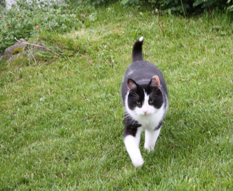 Nero kom til slutt inn i sin gamle leilighet. Den nye eieren kontaktet oss slik at vi fikk henta han. Tynn, sulten og litt engstelig ble han med hjem. Fikk mat og masse kos så det gikk fort å komme tilbake til heltene igjen. Nå går han bare ut i korte perioder av gangen. Holder seg mest innendørs og i nærheten av marskåla. Endelig hjemme hos flokken sin igjen.