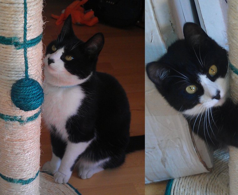 Kastrert og chippet hann-katt. Litt rar hale-tupp, lyseblått halsbånd, kan være noe nervøs av natur men kjempe-snill. ID:578098100431900