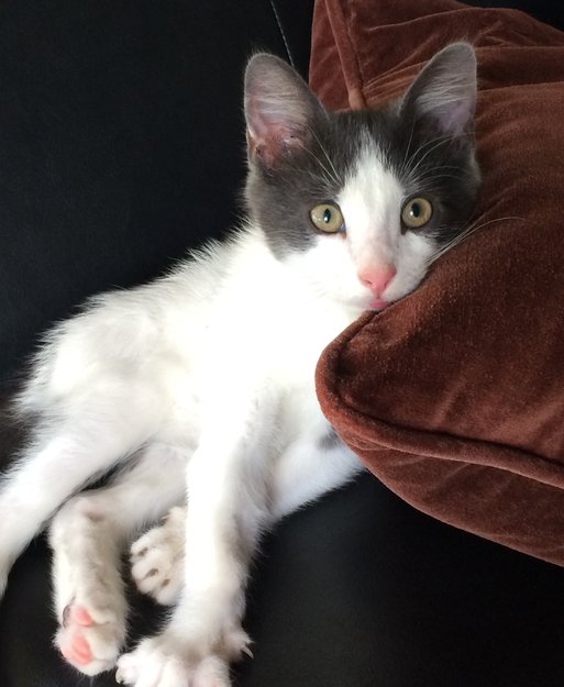 Beste kjennetegen er en liten hvit flekk helt ytters på halen. Han er slank, veldig kjælen og glad i mennesker.