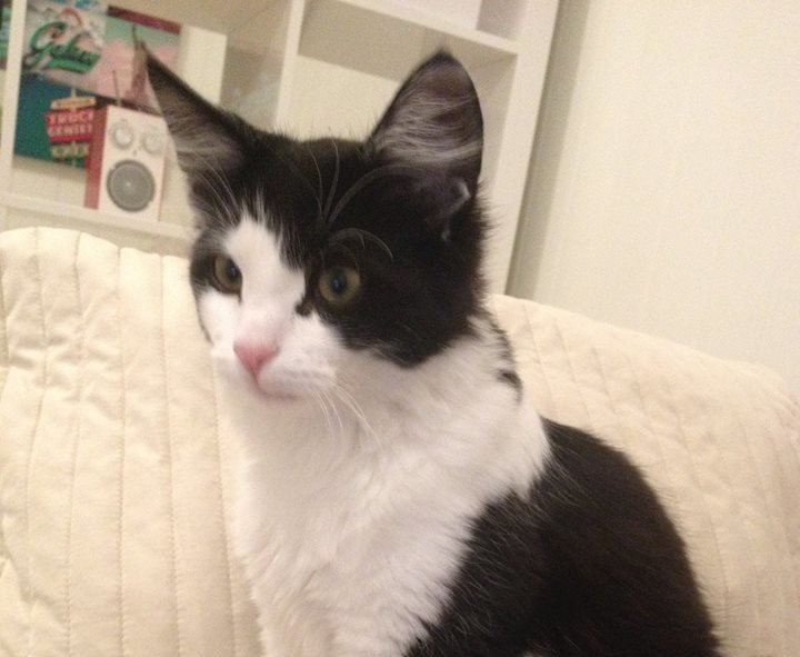 Jeg tror den er ung , noen mnd gammel. Den har litt lengre hår på ørene.