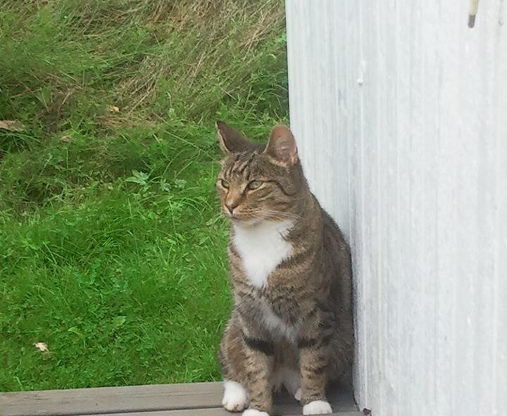 Katt som har slått seg til hos mine foreldre, men pusen som bor her jager den bort. Virker menneskevant, men er veldig sulten.