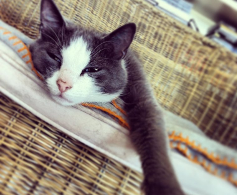 Liten hankatt som er snill og tillitsfull og veldig sosial. Relativt uredd for hunder.