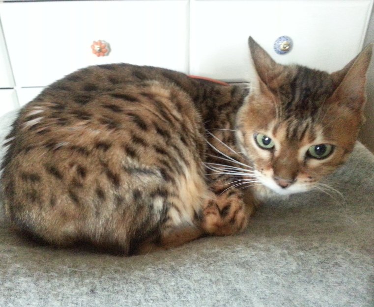 Ischa har høy stemme, hun er liten av vekst, slank. Ligner på en liten leopard. Grønne øyne, glatt pels i brunnyanser og svarte striper.