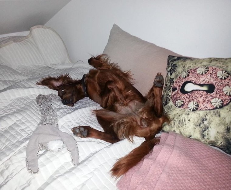 Hunden er en 3 år gammel irsk setter, og hadde på seg en oransje vest da hun forsvant. Om noen ser noe til denne hunden, vennligst ta kontakt på telefonnummer 92211152.