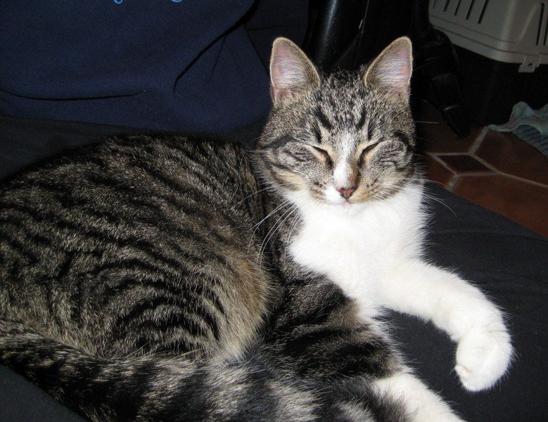 Fredag 27/11-2009 dukket denne pusen opp. Han er ekstremt kjælen og tillitsfull. Kjennemerker: Svart haletipp, svart flekk bak høyre bakpote, smal i ansiktet fra snuten og ut.