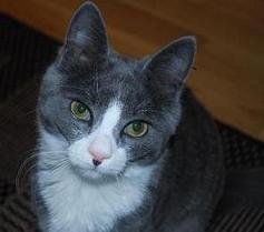 Han heter Felix og er grå med hvitt bryst, hvit mage og hvite poter. Han er rundt to år gammel og ikke særlig storvokst av seg.