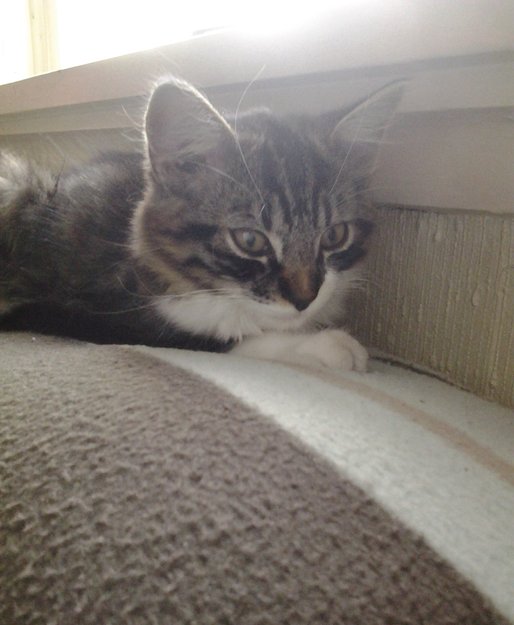 Fant kattunge langs Stasjonsveien, den gikk fram og tilbake alene. Virket forvirret, litt redd og engstelig for trafikken. Den pep og virket som den lette etter noe eller noen. Kanskje hjemmet sitt? Den var kontaktsøkende da jeg kom bort tilvden. Jeg ble hos den for å se om noen kom for å lete etter den, men tok den med hjem etter en stund. Da ringre jeg politiet og Viking, men de kunne ikke hjelpe. Jeg har sendt mail til FOD og Dyrebeskyttelsen, de svarte ikke på telefon. Katten var svært tørst og sulten. Jeg kan ikke ha den og trenger hjelp til å finne eieren, evn noen gode erstattere. Neste skritt blir å ringe veterinærhøgskole n, og da blir den vel avlivet :(