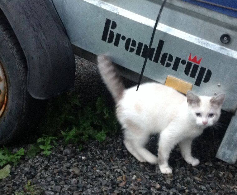 Hvit og grå hannkatt ble funnet i Hamar