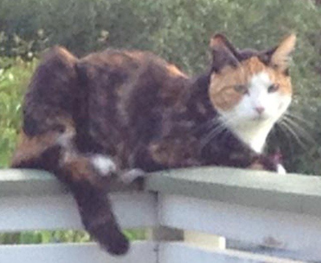 Katten vår, Milli, ble borte søndag kveld. En litt sky hunnkatt. Trefarget katt, rødbrun,, hvit og svart. Hvit på brystet. Ett år gammel.