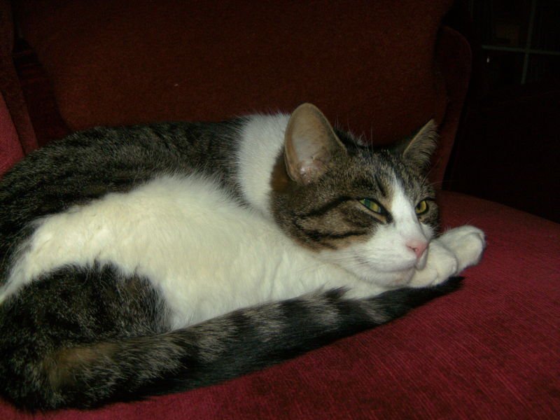Denne katten har vært et hyppig syn utenfor huset vårt siden tidlig høst, den så da ut til å være ung. Har holdt seg rundt huset vårt i julen, og sett ut til å ha tilhold under garasjen. Løper direkte inn i huset så snart den ser at døren er åpen. Har vært inne her en natt, den snek seg inn sent på natten, og vi hadde ikke hjerte til å kaste den ut.