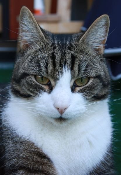 "Vanlig" huskatt. Hvit i ansiktet og på potene.