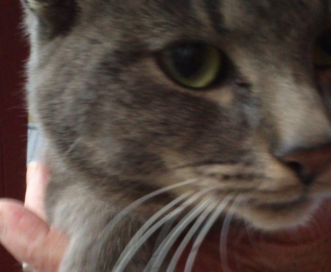 Svakt mønster på ryggen. Veldig kjælen. Ikke så stor.