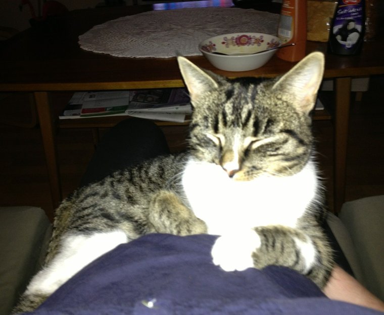 Hun hadde forvillet seg ned i kjelleren på et nabohus i borettslaget hvor utgangsdør og kjellerdør har stått åpen. Heldigvis hadde jeg mulighet til å låse meg inn og sjekke kjellerene i dag, og da dukket hun plutselig opp. Hun virker i fin form etter forholdene og vi er veldig glad for å få henne tilbake!