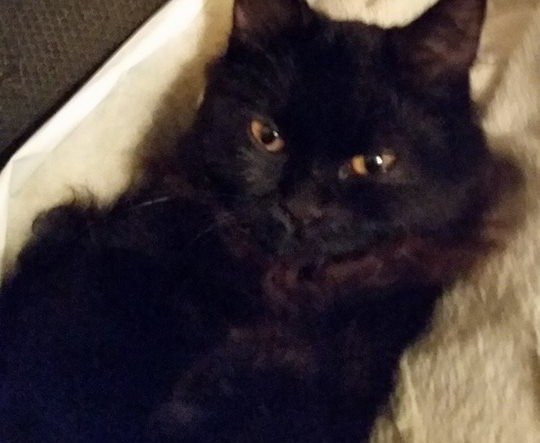 Liten ca 6 måner. Svart med noe brunt, brun krans rundt halsen.