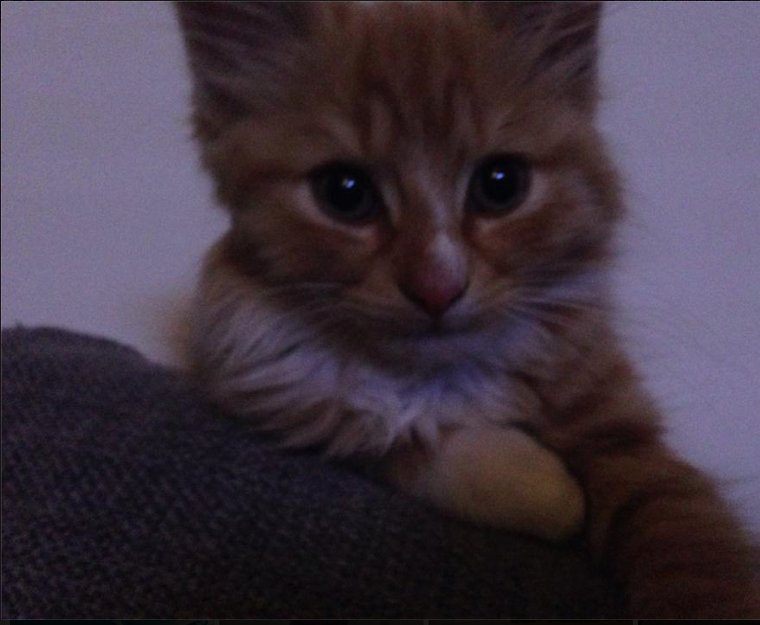 Bobby er en langhårig katt som er orange i pelsen med hvit pels på brøstet og på potane.