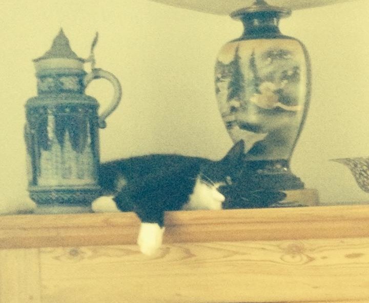Svart og hvit hannkatt. Lange ben. Vennlig og Leken