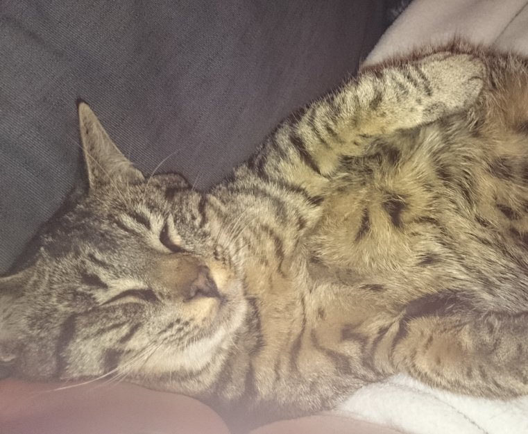 Tigergutt sto plutselig og mjauet på døra :) Vi tror han har vært borte i åtte dager... Så glade nå :)