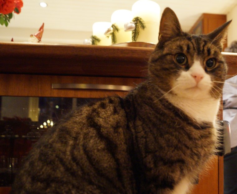 Veldig vennlig sinned og kosete, elsker mat og lyder navnet sitt i blandt