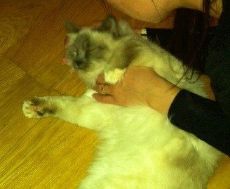Pjusk skrapte på vinduet i dag tidlig og har heldigvis funnet veien hjem :) hun var kald, våt og veldig sulten, men nå ligger hun på badegulvet og koser seg :)