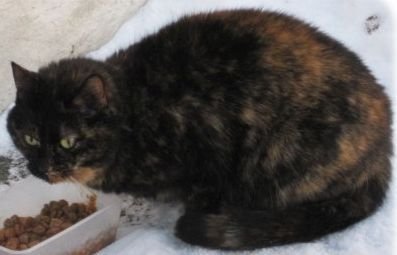 Efter att ha letat i en timme så hørde æntligen Mia att jag ropade på henne. Det var en tørstig, kall och hungrig katt som dessutom hade blivit kløst på nosen som efter 3 dygn ute i kylan kom ut från under grannens hus.
